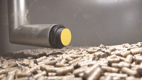 In pellet heating systems, pellets from big bags or other storage containers are sucked into the suction chamber until it is filled to the defined point level. This results in the formation of a cone of pellets in the suction chamber, which makes the measurement at the edge of the container imprecise. The point level measurement must therefore be taken from the center of the suction chamber. Optical sensors are unsuitable here due to the buildup of dust.