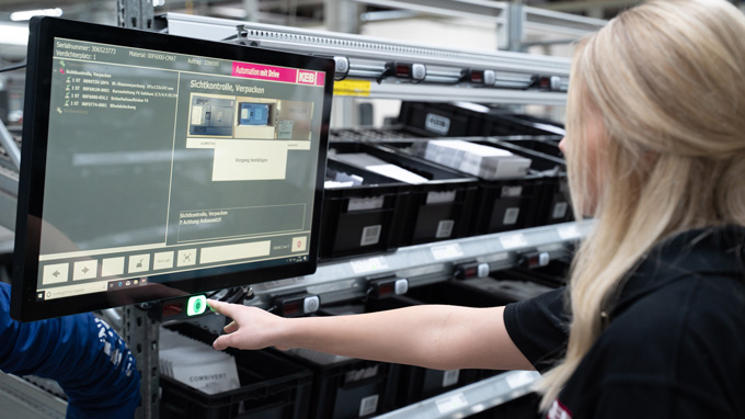 KEB Automation a optimisé quatre postes de travail avec un système d'aide à la préparation manuelle des commandes - guidé intuitivement grâce à une solution pick to light prête à être connectée de Turck