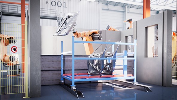 Les porte-pièces sont utilisés dans l'industrie automobile pour transporter les pièces entre les différentes étapes de production. Les porte-pièces sont chargés et déchargés à l'aide de robots. L'identification des pièces individuelles et la détection fiable de leurs espaces de chargement sont indispensables pour garantir une alimentation rapide et sans heurts des pièces vers les processus en aval. Le système de commande de la machine doit savoir quelle pièce doit être traitée à l'étape suivante. Les porte-pièces mobiles en mouvement constant posent des défis supplémentaires aux utilisateurs.