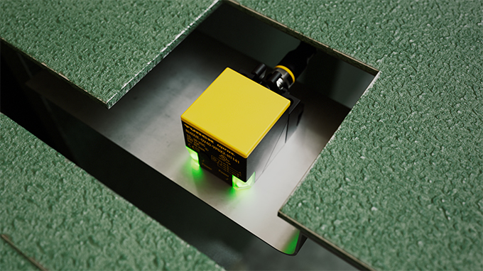 C'est dans ces conditions exigeantes que l'interrupteur de fin de course inductif NI40UE-QV40, avec une distance de commutation accrue jusqu'à 40 mm, prend tout son sens. Pour la détection de la position par le bas, le capteur Facteur 1 de 40 x 40 mm est monté sur le panneau en acier du cadre de transport dans les découpes rectangulaires prévues à cet effet, avec une longueur de bord de 100 mm. Les parties métalliques environnantes de la structure de l'installation protègent le dispositif. Le capteur compact Efficiency Line convient parfaitement aux applications où l'espace d'installation disponible est limité, car seule une zone minimale sans métal est nécessaire pour un fonctionnement sans interférence.