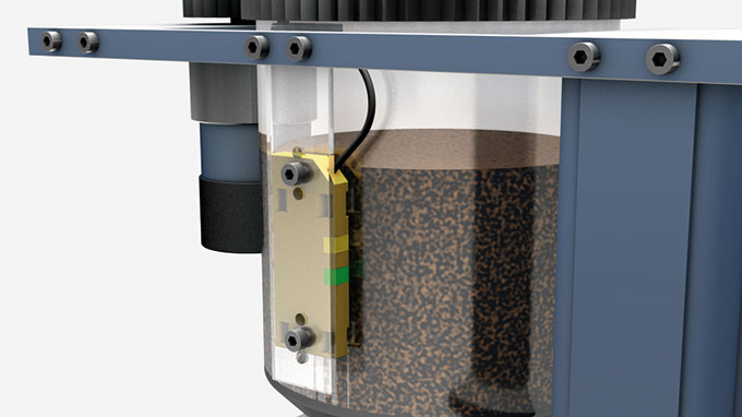 - Le détecteur capacitif QF5,5 détecte efficacement le niveau de remplissage de café moulu dans des récipients