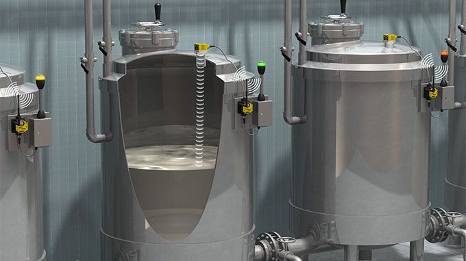 Transmission fiable de données sur des niveaux de cuves fluctuants vers un système central de commande Le nœud FlexPower DX80 de Banner Engineering combine des E/S logiques et analogiques, ce qui rend inutile toute collecte de données manuelle et souvent fastidieuse. Les niveaux des cuves sont surveillés via un détecteur à ultrasons connecté à une entrée analogique. Les alarmes ou les points de consigne peuvent être signalés par un EZ-LIGHT sur les sorties logiques. La passerelle Pro DX80 collecte les données des détecteurs à distance pour permettre le suivi des données, l'envoi d'alertes par e-mail ou le déclenchement d'événements spécifiques.